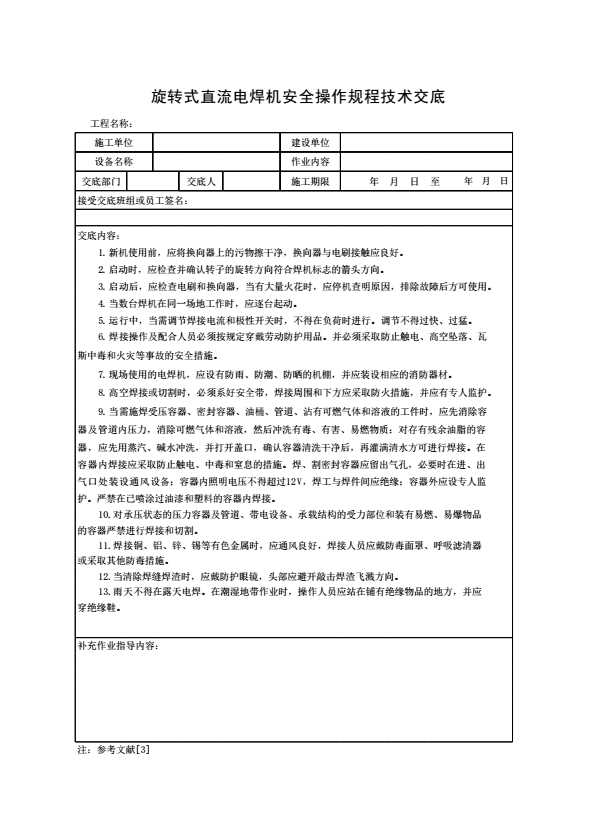 表格名称:旋转式直流电焊机安全操作规程技术交底