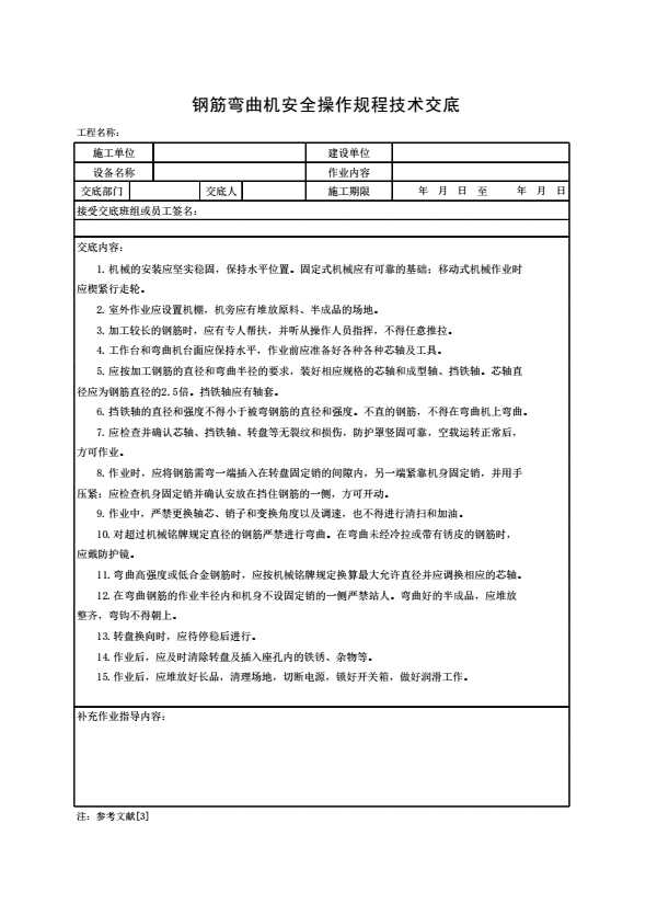 表格名称:钢筋弯曲机安全操作规程技术交底