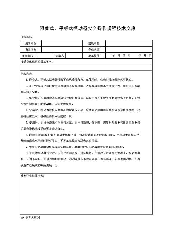 表格名称:附着式、平板式振动器安全操作规程技术交底
