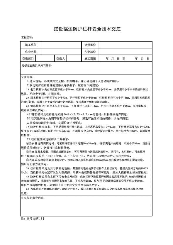 表格名称:搭设临边防护栏杆安全技术交底