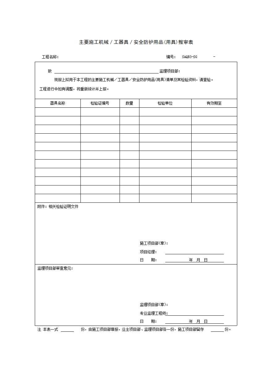 SAQB3 主要施工机械/工器具/安全防护用品(用具)报审表