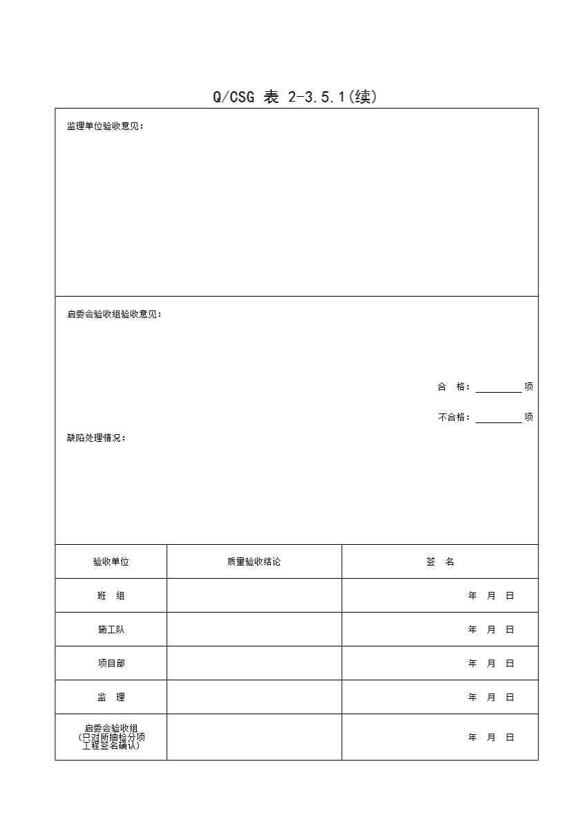 QCSG 表 2-3.5.1 母线安装 分项工程质量验收记录表