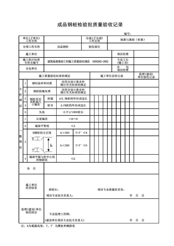 表格名称:成品钢桩检验批质量验收记录