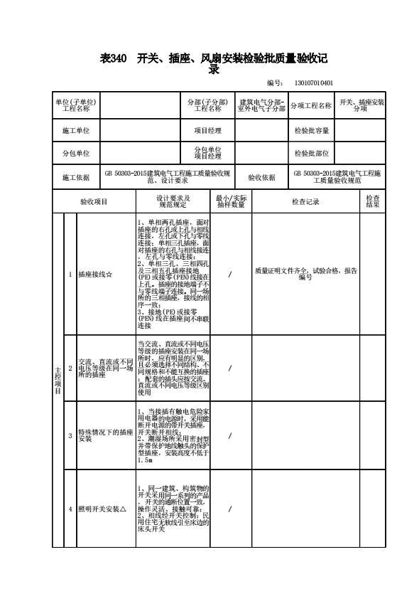 130107010401 开关、插座、风扇安装检验批质量验收记录