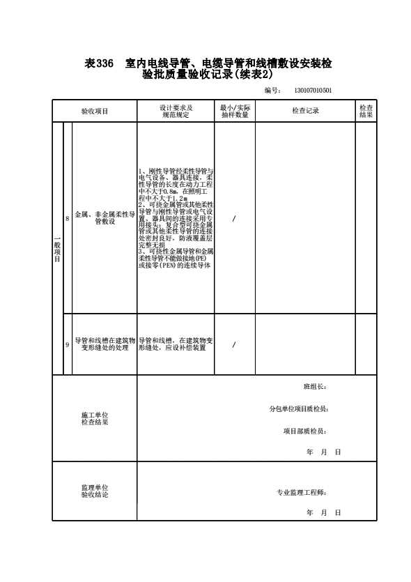 表格名称:130107010501 室内电线导管、电缆导管和线槽敷设安装检验批质量验收记录