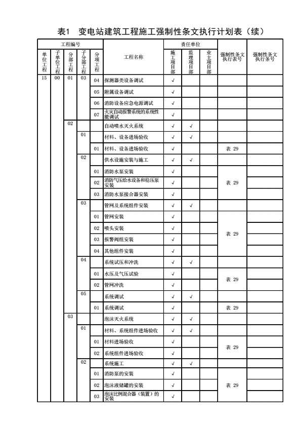 表格名称:表1 变电站建筑工程施工强制性条文执行计划表