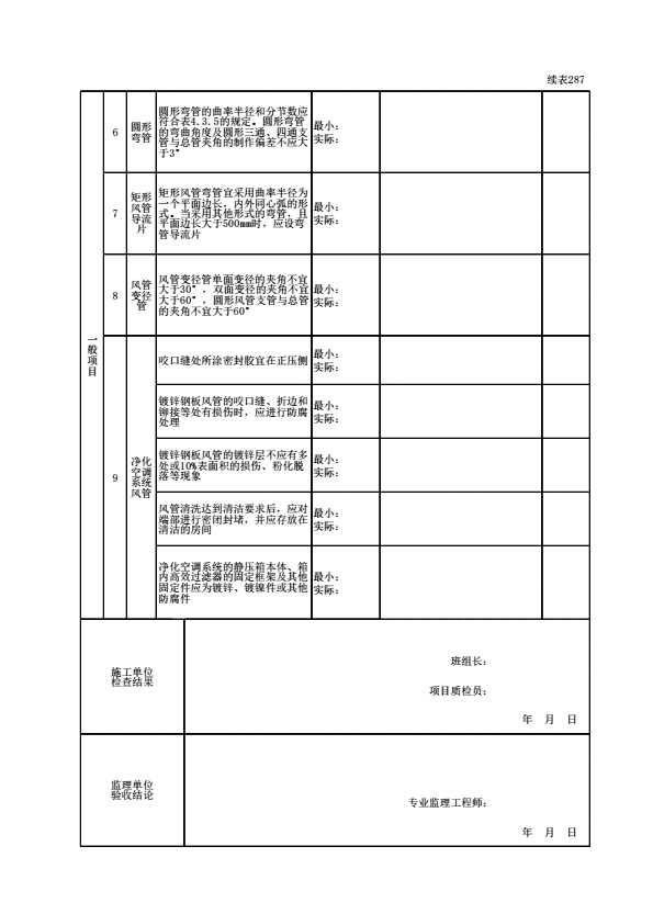 表格名称:010206010101 风管与配件制作(金属风管)检验批质量验收记录