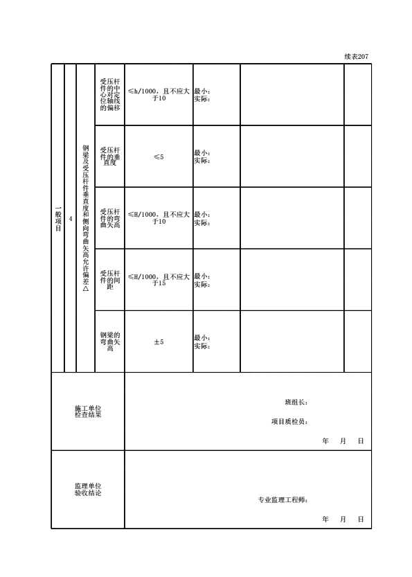 表格名称:020103140201 隔音屏障支架安装检验批质量验收记录