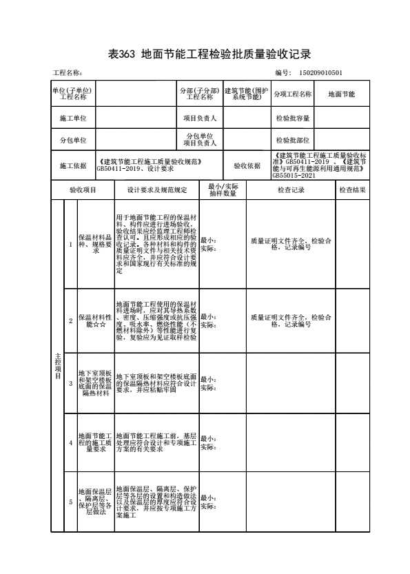 表格名称:150209010501 地面节能工程检验批质量验收记录