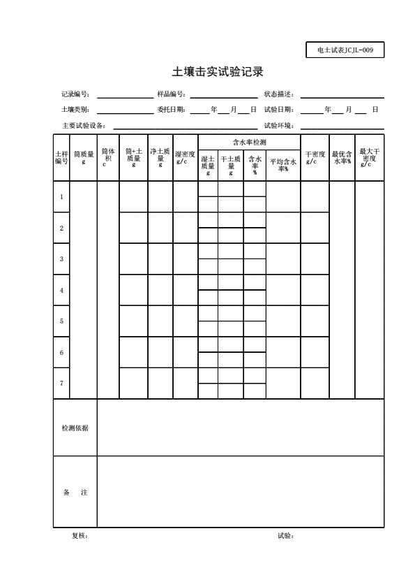表格名称:电土试表JCJL-009 土壤击实试验记录