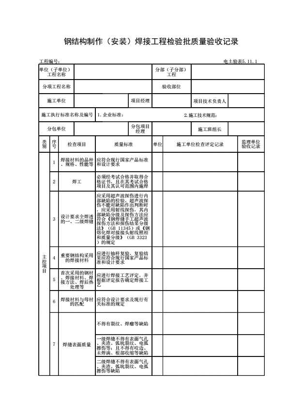 表格名称:电土验表5.11.1 钢结构制作(安装)焊接工程检验批质量验收记录