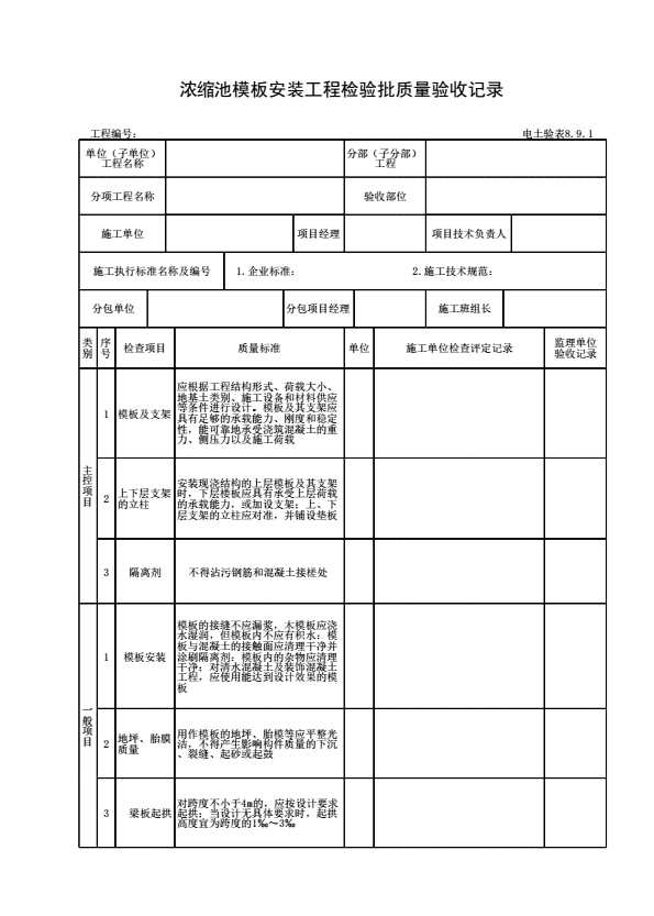 表格名称:电土验表8.9.1 浓缩池模板安装工程检验批质量验收记录