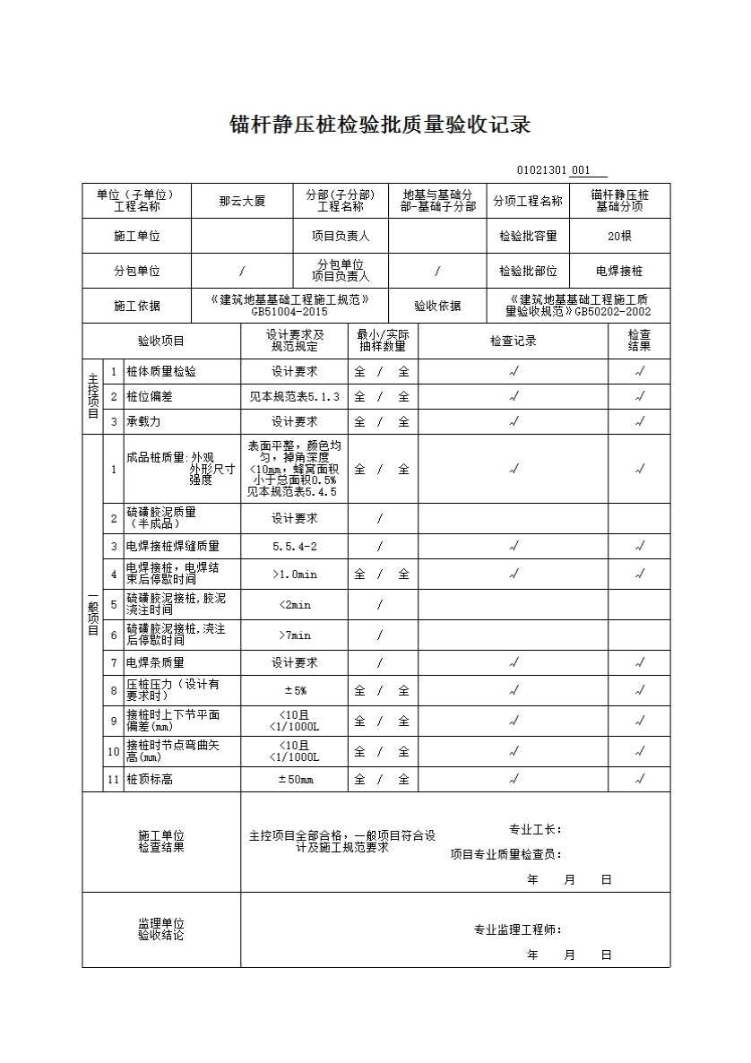 5.2.1 静力压桩包括锚杆静压桩及其他各种非冲击力沉桩。