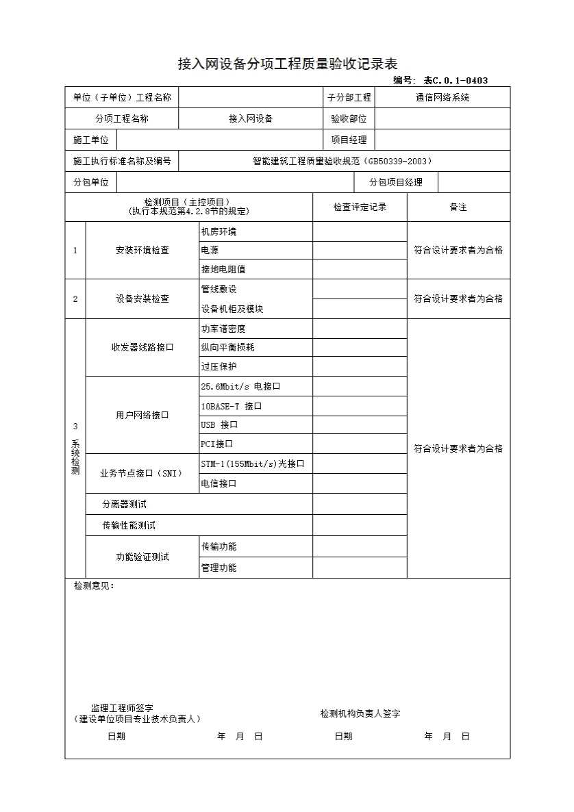 C.0.1-0403 接入网设备分项工程质量验收记录表