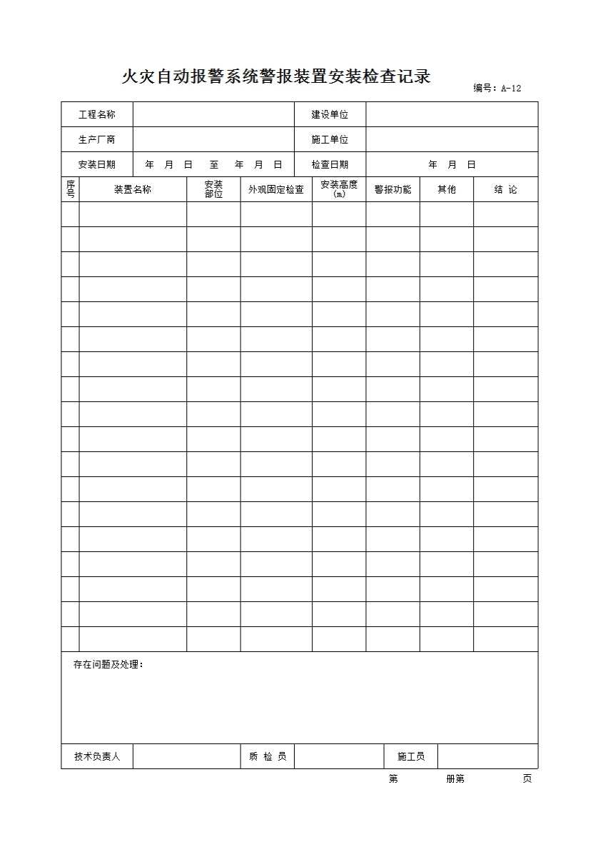 表格名称:火灾自动报警系统警报装置安装检查记录
