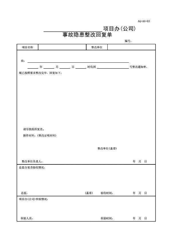 AQ-A6-03事故隐患整改回复单