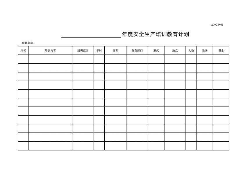 表格名称:AQ-C3-01_______安全会议签到表年度安全生产培训教育计划