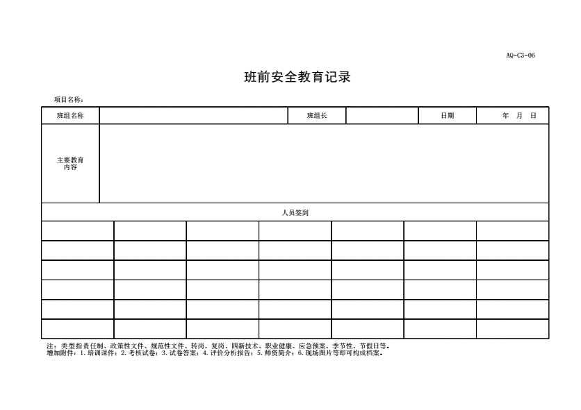 表格名称:AQ-C3-06班前安全教育记录