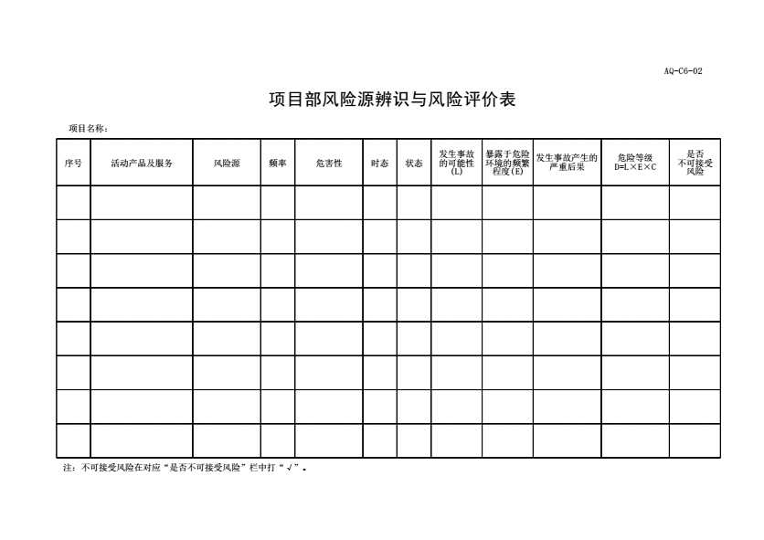表格名称:AQ-C6-02项目部风险源辨识与风险评价表