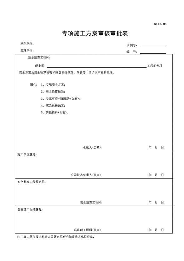 表格名称:AQ-C6-06专项施工方案审核审批表