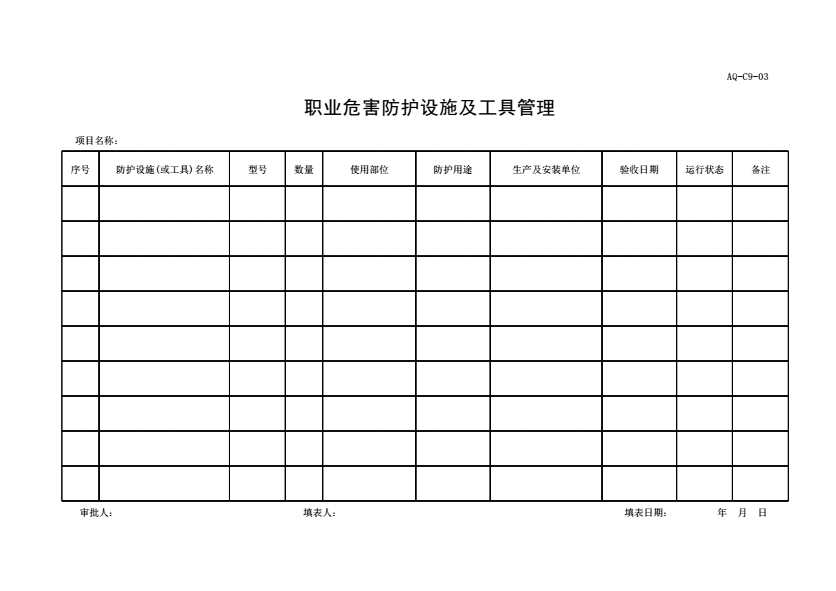 表格名称:AQ-C9-03职业危害防护设施及工具管理