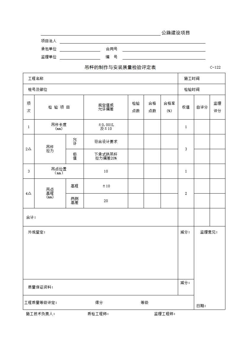 表格名称:C-122 吊杆的制作与安装质量检验评定表