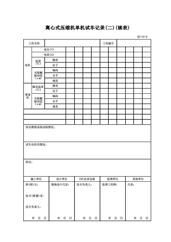 表格名称:设-16-1 离心式压缩机单机试车记录(一)