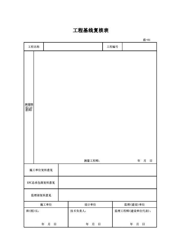 表格名称:盾-01 工程基线复核表