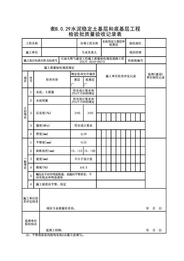 表格名称:表B.0.29 水泥稳定土基层和底基层工程检验批质量验收记录表