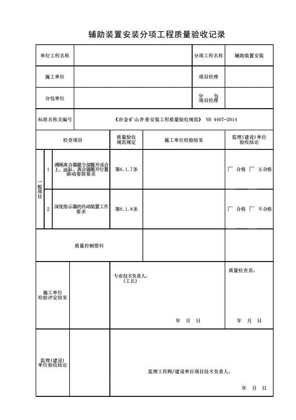 YB 4407-2014 冶金矿山井巷安装工程质里验收规范