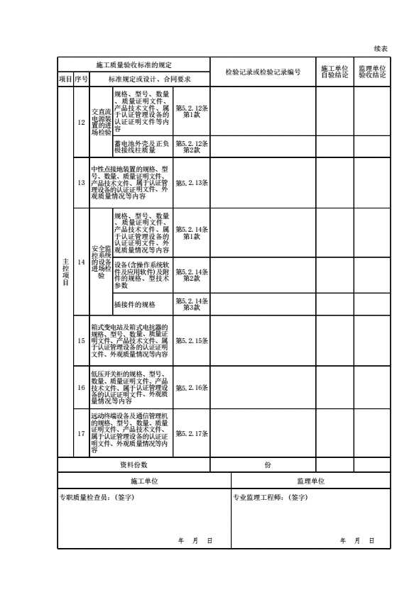 表格名称:09030601 电气装置进场检验检验批质量验收记录