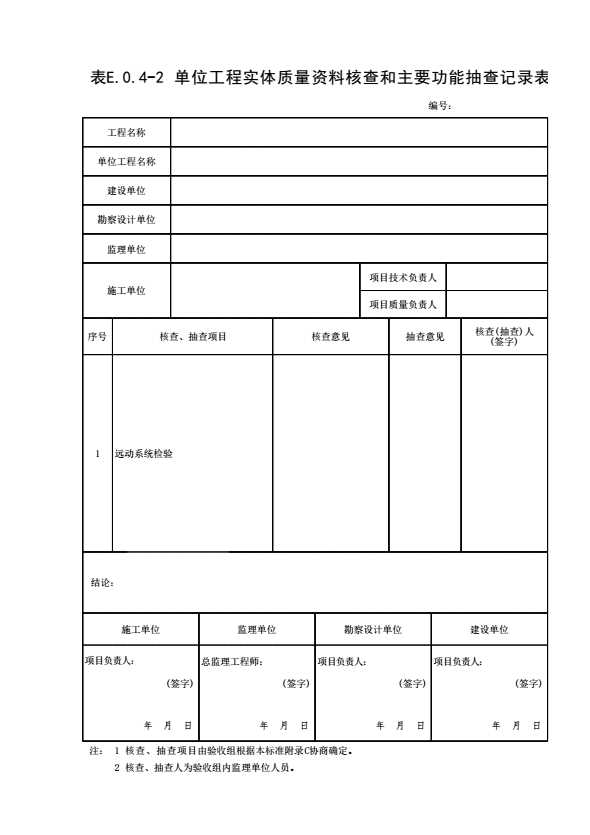 表E.0.4-2 单位工程实体质量资料核查和主要功能抽查记录表