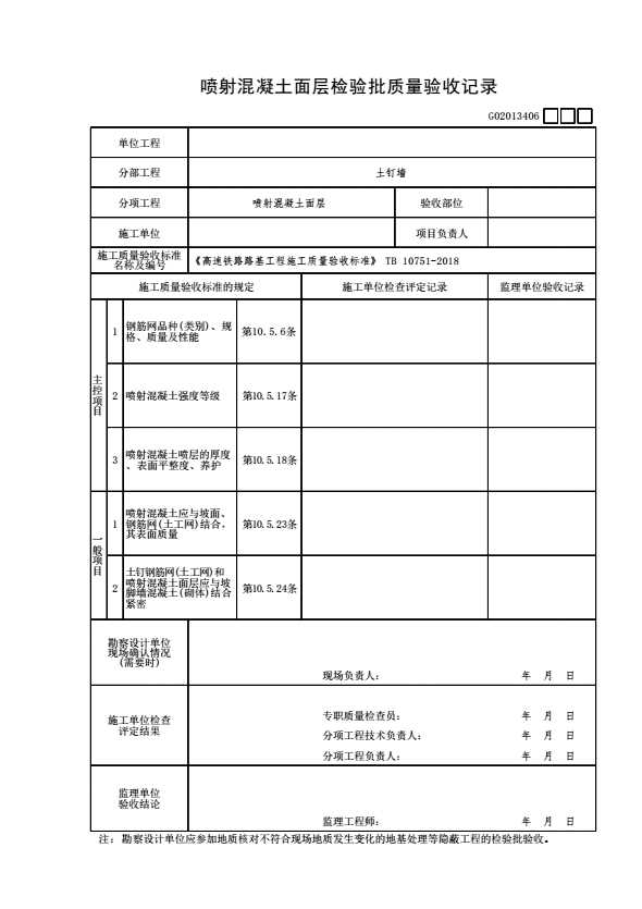 表格名称:G02013406 喷射混凝土面层检验批质量验收记录