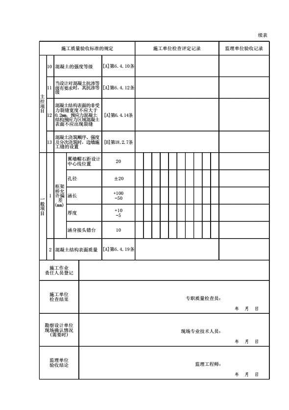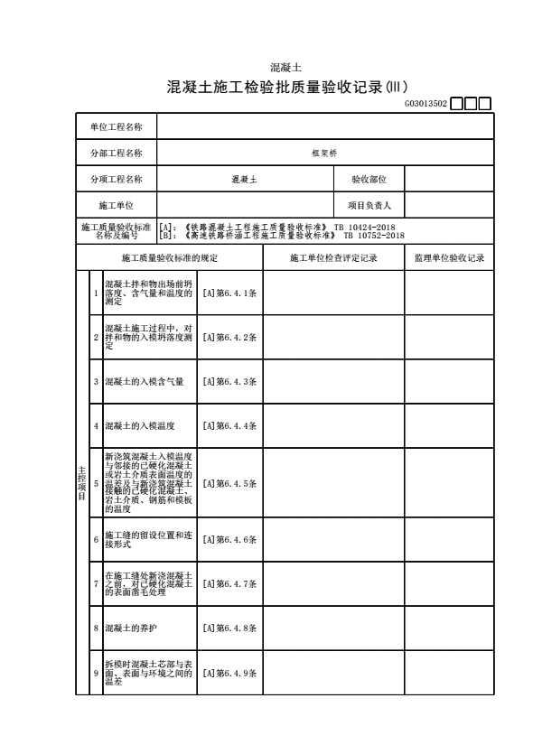 表格名称:G03013502 【混凝土】混凝土施工检验批质量验收记录(Ⅲ)