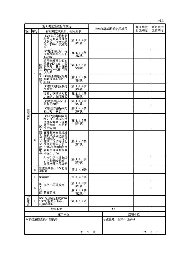 表格名称:G07070102 漏泄同轴电缆安装检验批质量验收记录表