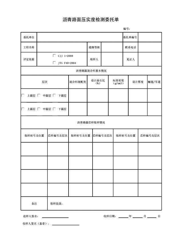 SZ-C3.3.14 沥青路面压实度检测委托单