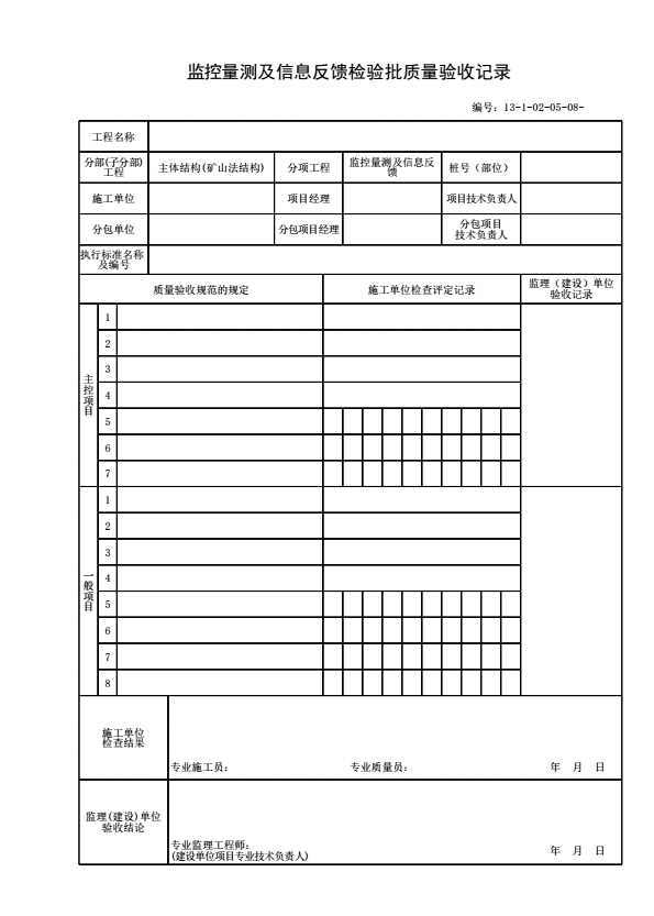 表格名称:监控量测及信息反馈检验批质量验收记录