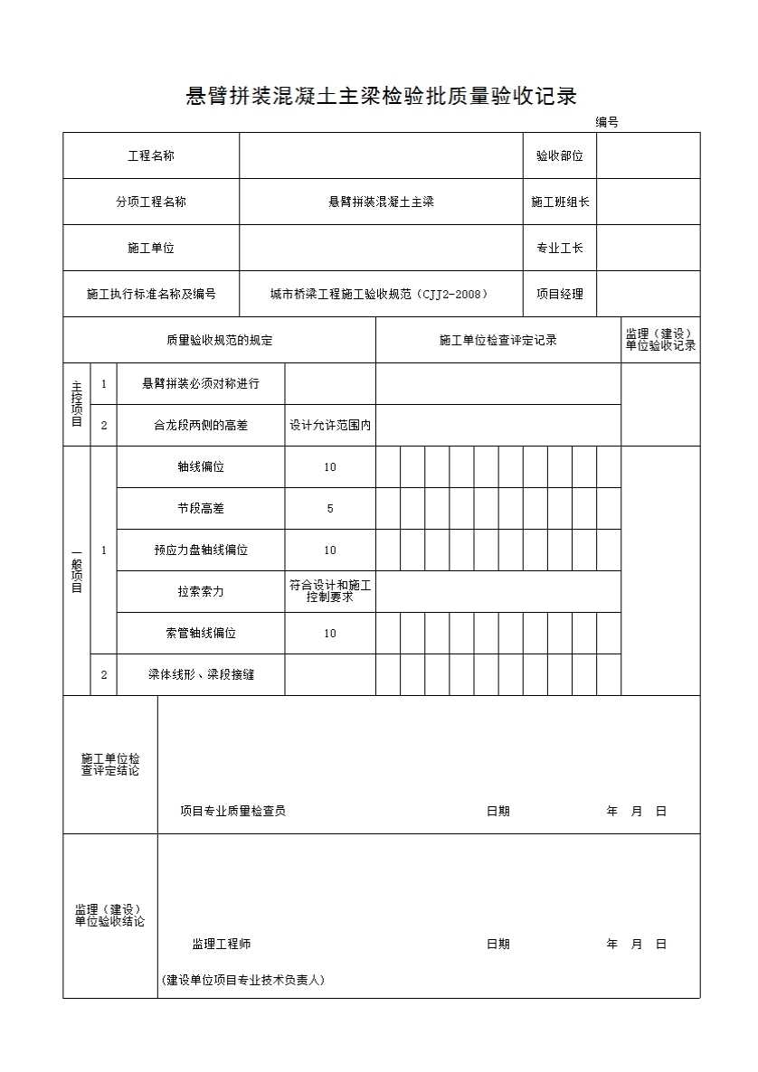 表格名称:4 悬臂拼装混凝土主梁检验批质量验收记录
