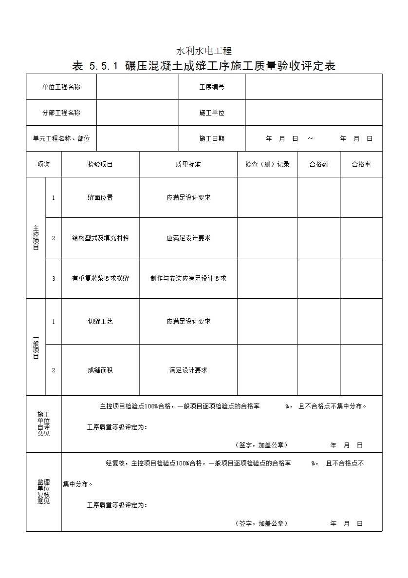 表 5.5.1 碾压混凝土成缝工序施工质量验收评定表