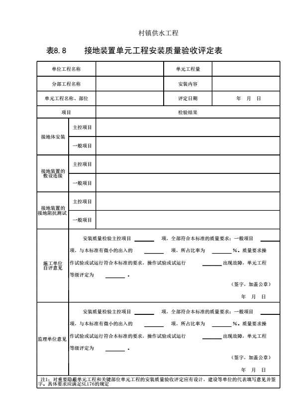表格名称:表8.8 接地装置单元工程安装质量验收评定表