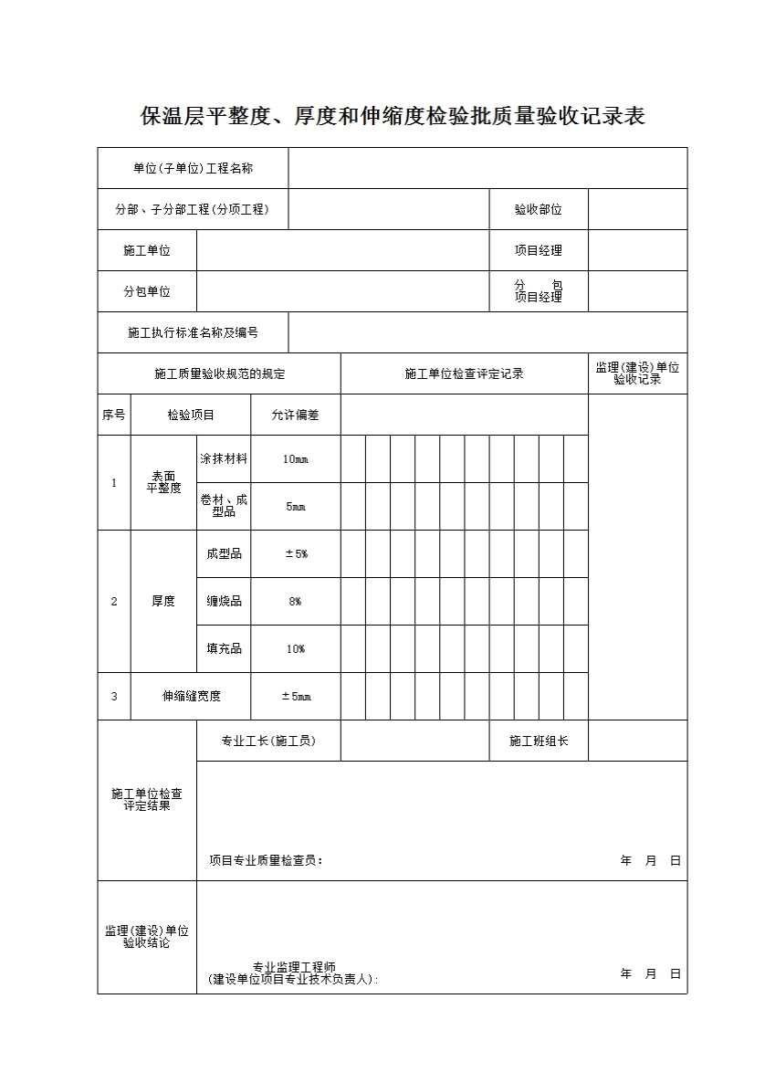 表格名称:保温层平整度、厚度和伸缩度检验批质量验收记录表