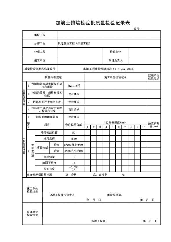 表格名称:加筋土挡墙检验批质量检验记录表