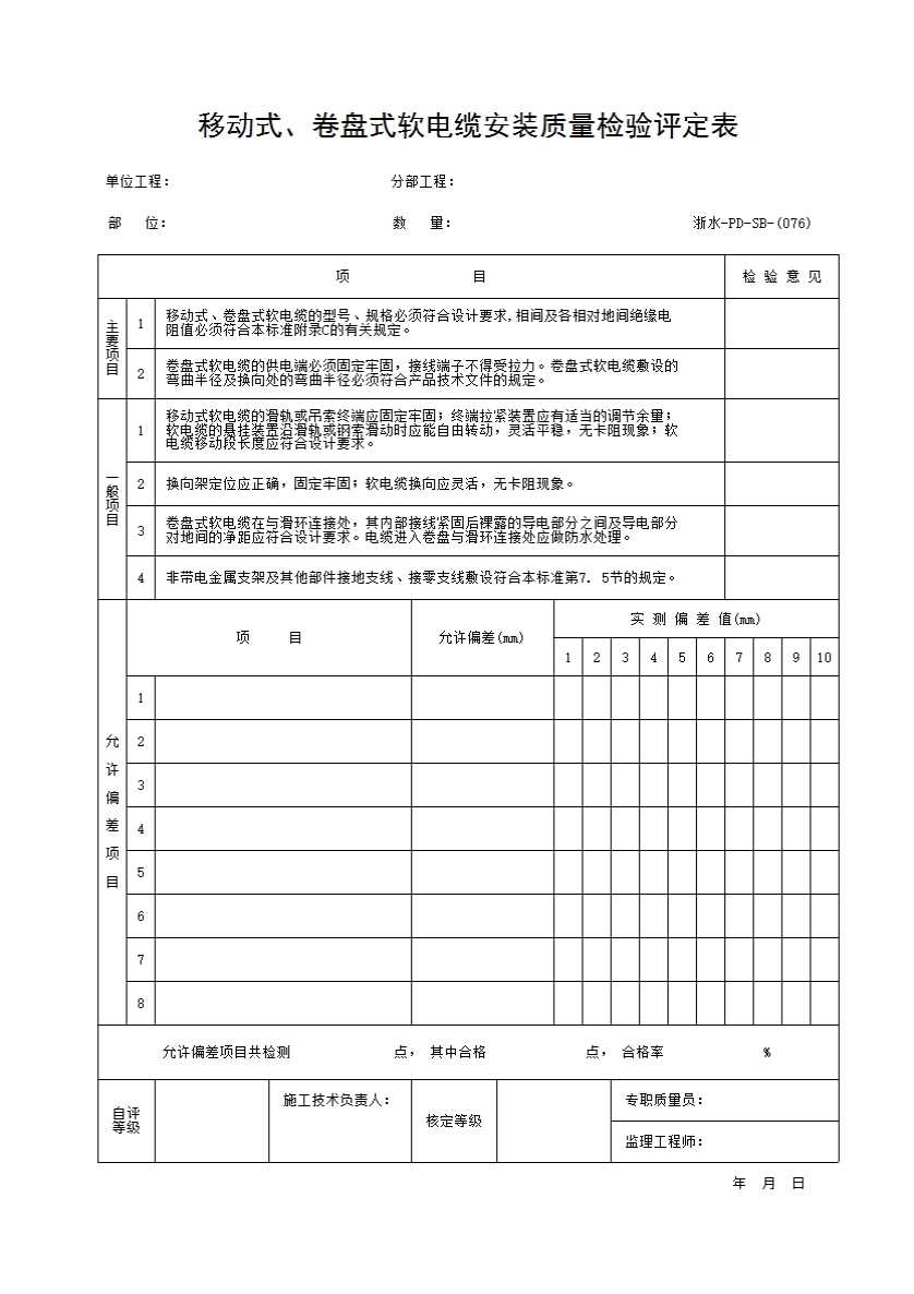 表格名称:076 移动式、卷盘式软电缆安装质量检验评定表