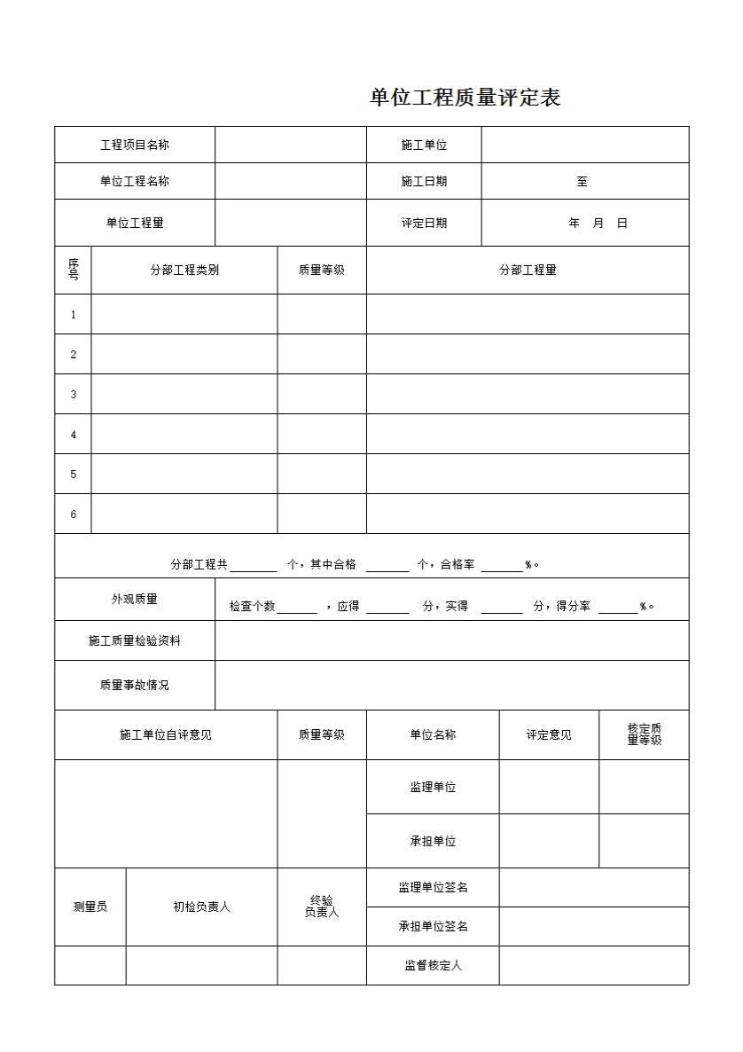 单元工程质量评定表