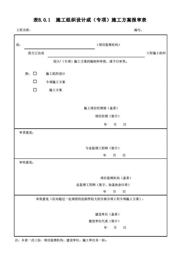 表格名称:表B.0.1 施工组织设计(专项)施工方案报审表
