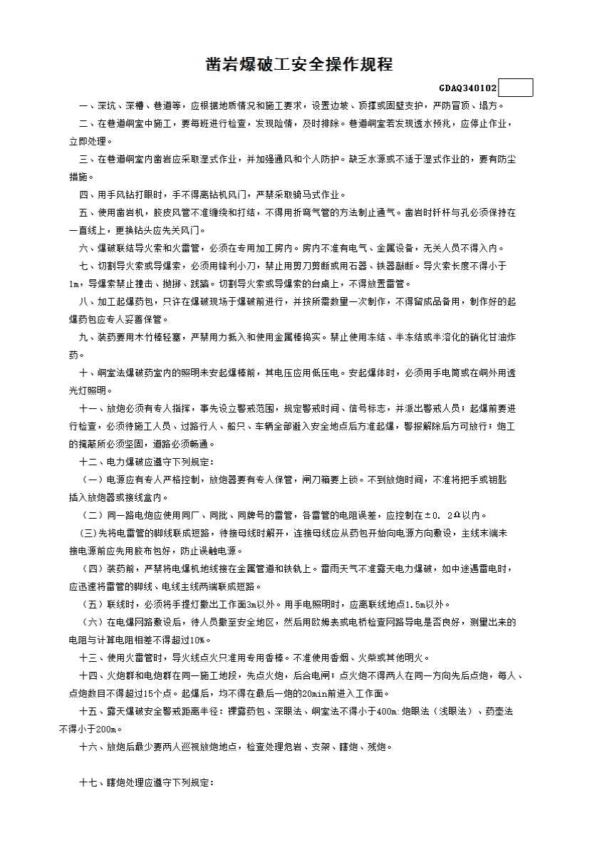 表格名称:2.凿岩爆破工安全操作规程GDAQ340102
