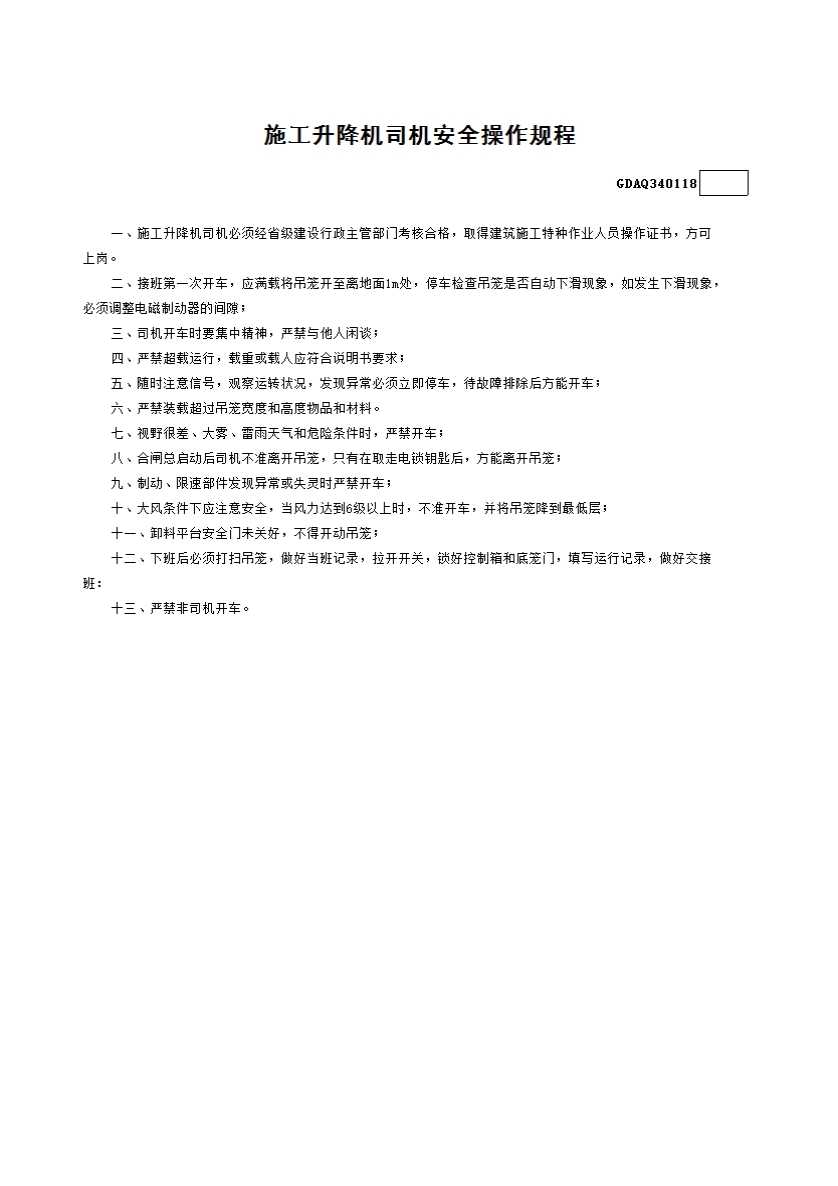 表格名称:18.施工升降机工安全操作规程GDAQ340118