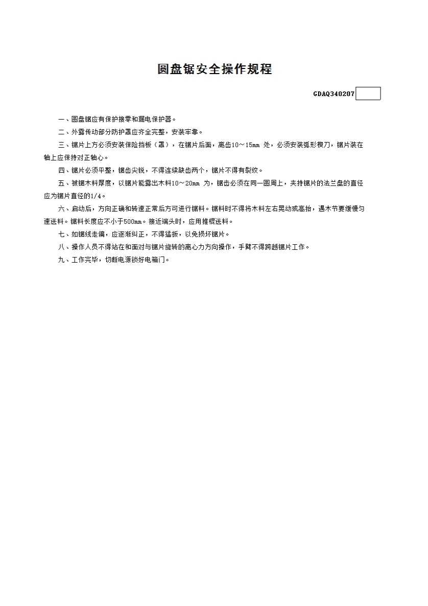 表格名称:7.圆盘锯安全操作规程GDAQ340207