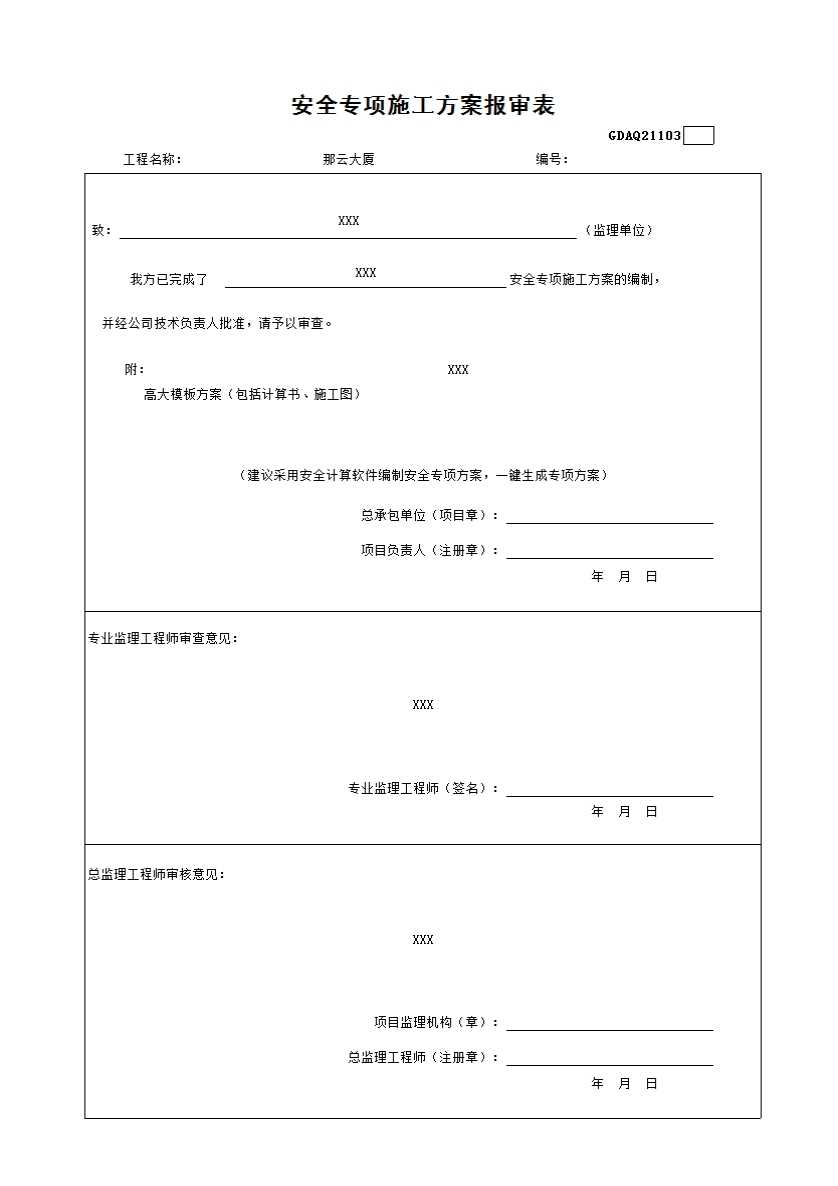 表格名称:14.安全专项施工方案报审表GDAQ21103