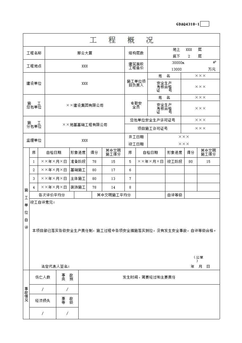 表格名称:19.建设工程施工安全评价书GDAQ4318